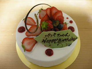 パパちゃんのおたんじょうびにお店でケーキを買いました。