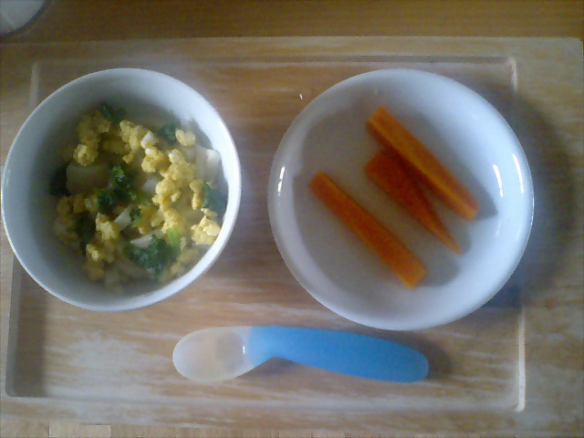 この頃どうも手で持ちたいらしく、やわらかく煮たニンジンスティックを